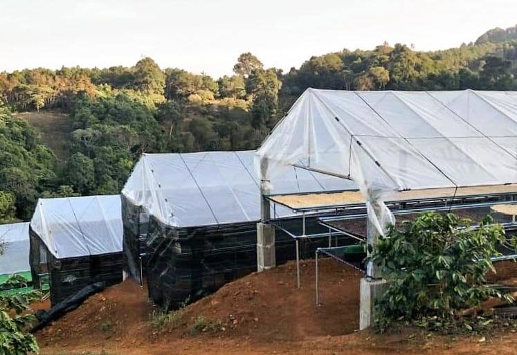 The coffee cherries are picked and cleaned before being dried on raised beds. The next day, the cherries are put into the tank to ferment for 3 days with yeast and nutrients. After fermentation was complete, P' Sanchai pulped the coffee and returned it to the tank to ferment with mosto (the coffee cherry juice from the previous fermentation). Once fermentation is complete, the cherries are partially washed and dried in an enclosed dehumidified room for 10 days to reduce the moisture content. This double fermentation amplifies the fruity flavors in the final cup.